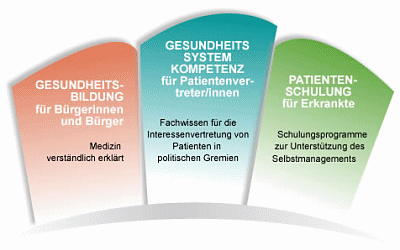 Patientenschulungen für Erkrankte, ihre Angehörigen und Mitglieder von Selbsthilfegruppen. Diese sollen